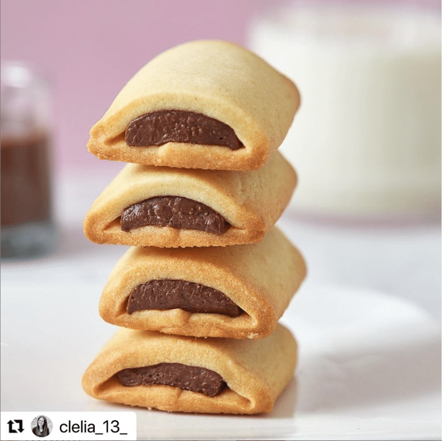 Ingrédients : 100 g de sucre glace 50 g d’œuf battu 125 g de beurre pommade 250 g de farine T55 1 g de fleur de sel Pâte à tartiner NucellinaRecette :1. La veille, dans des moules, ou des empreintes congeler de la pâte à tartiner 2x5cm et 0,5cm d’épaisseur. Vous pouvez aussi faire des […]