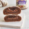 3.Diviser la pâte en deux, et ajouter la poudre de cacao tamisée et la crème dans une des préparations.
