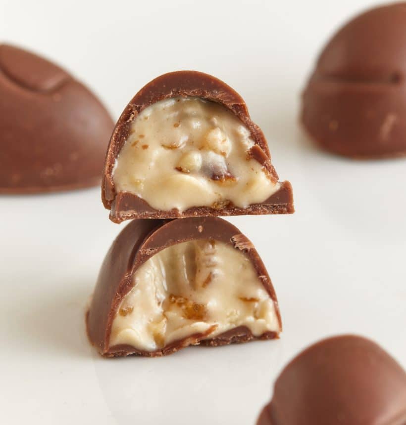 Ingrédients : ⁃ 150 g de chocolat au lait ⁃ 50 g de pâte à tartiner Nucellina Gourmande ⁃ 15 g de pralin (maison ou du commerce) Déroulé : • Mélanger 50 g de pâte à tartiner Gourmande avec 15 g de pralin • Faire fondre (ou mieux tempérer suivant la courbe) 150 g de chocolat, verser dans les moules, retourner, […]