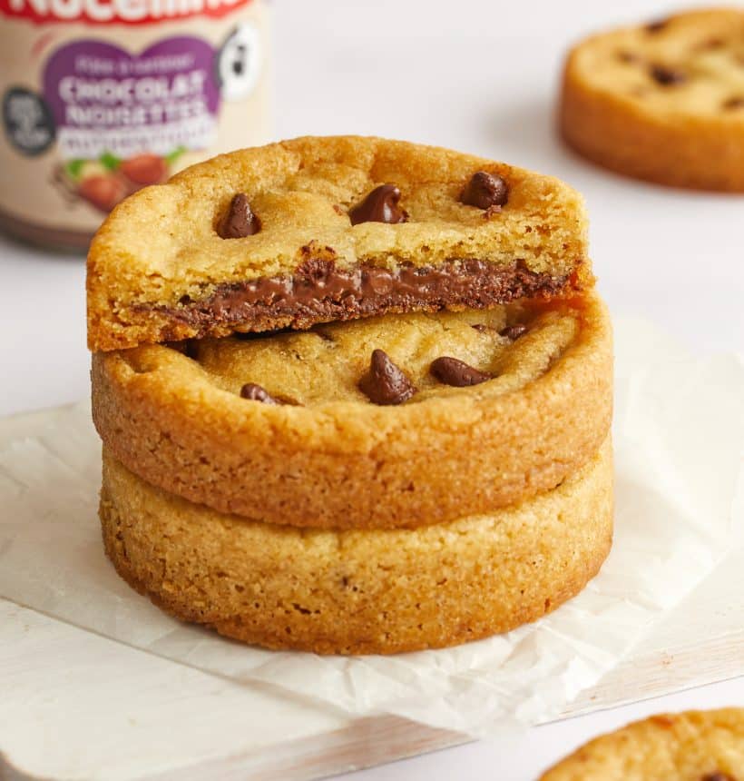 Recette pour 15 cookies environ ⁃ 1 pot de pâte à tartiner Nucellina ⁃ 200 g de beurre doux pommade ⁃ 130 g de sucre semoule ⁃ 100 g de sucre complet ⁃ 1 pincée de fleur de sel ⁃ 1 œuf ⁃ 270 g de farine T55 ⁃ 1 cuillère à café rase de levure chimique ⁃ 1 cuillère à café rase de bicarbonate […]